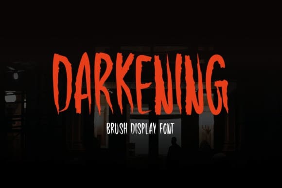 Darkening Brush Font, is a brush display font. This font works well for many different things, including stationary, logos, t-shirts, papers, print designs, website headers, picture frames, flyers, album covers, posters, and image sliders.