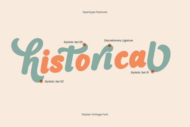 With its thick weight and rounded shapes, Dayten Vintage captures the essence of retro typography, evoking memories of old-fashioned signage and advertising. Each letter is meticulously crafted with smooth curves and flowing lines, creating a sense of fluidity and charm that is characteristic of vintage script fonts.