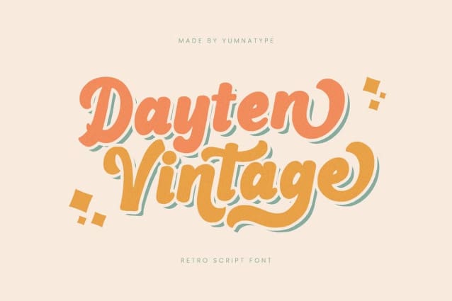 Dayten Vintage Font is a charming script font that transports you back in time with its retro-inspired design. Crafted with a thick weight and rounded shapes, this font exudes a sense of nostalgia and warmth.