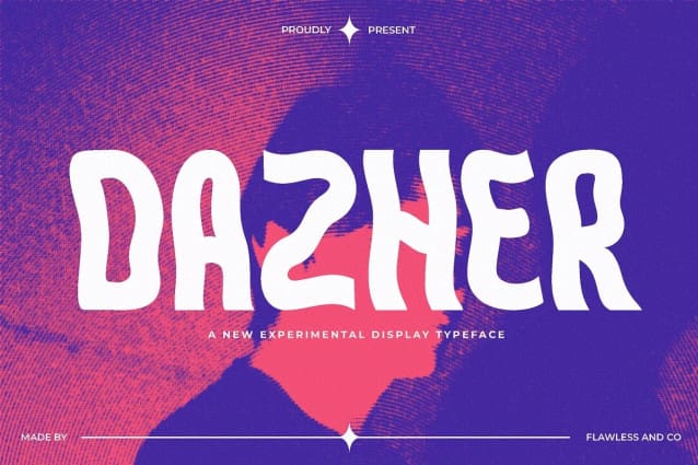 Dazher Experimental Font, a display sans-serif font that transcends the ordinary, elevating your designs with its distinctive and modern appeal. Dazher is not just a typeface; it’s a bold statement, a design element that captures attention and adds a touch of contemporary flair to your creative projects.