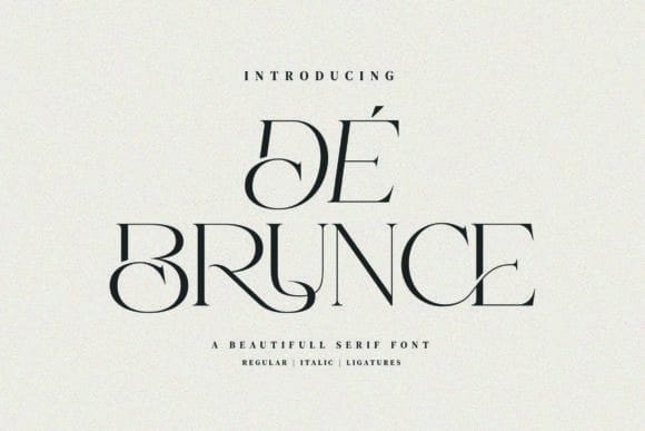 De Brunce Font, Stylish Ligature Typeface, inspired by the famous minimalist logo perfect for the purposes of designing templates, brochures, videos, advertising branding, logos and more.