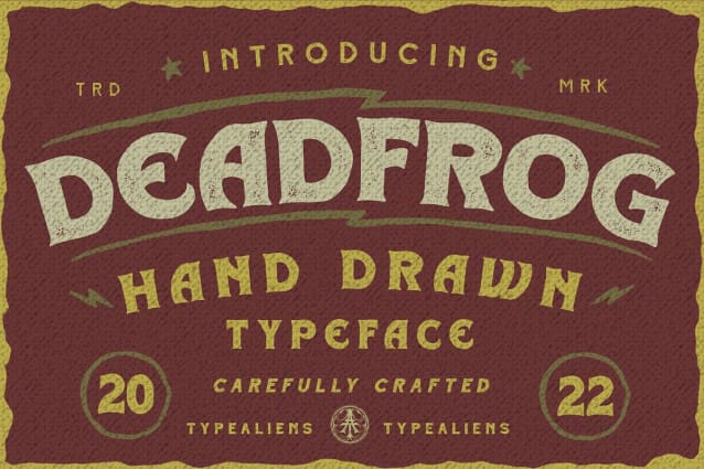 Deadfrog Font is a simple classic font, the base is a super bold serif font that is given a grunge texture effect, resulting in a vintage font, which is suitable for supporting designs related to the world of motorcycle custom. But it can also be used for other designs that require a vintage, bold design style, such as magazine headlines or posters.