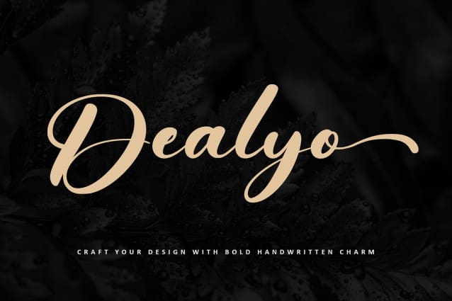 Dealyo Script font is made for personal use. Get the full version of the fonts if you want to use it for commercial purposes by purchasing the licenses here: https://creativemarket.com/Thomasara/135896339-Dealyo?u=fontlot123