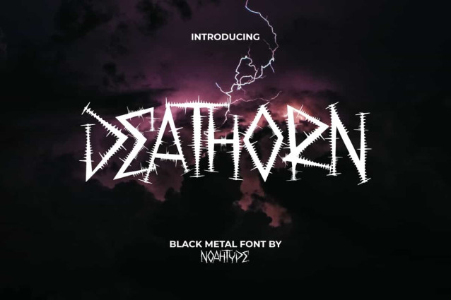 Deathorn Font is a sharp and harsh decorative black metal font, well made by NoahType. This font has a very good concept and details so it can convey a scary impression perfectly. It will be perfect for any designs, such as custom design, poster, label, brand image, cover, invitation, stationery, signage, marketing material, menu, printing, product packaging, quotes, website, and many more!
