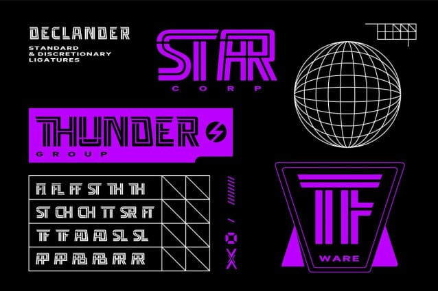 Declander Font is a Techno Inline font from Drizy studio. Provides all the basic styles you will need. It fits the futuristic, robotic, sci-fi theme of your projects.