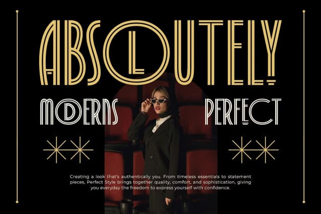 Decola Art Deco Font: A stunning blend of elegance and vintage charm, inspired by the bold and lavish aesthetics of the Art Deco era. This unique font is defined by its dynamic two-line stems, creating a sense of sophistication and movement, ideal for modern designs that evoke timeless elegance.