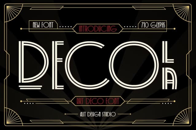 This font is made for personal use. Get the full version of the fonts if you want to use it for commercial purposes by purchasing the licenses here: https://creativemarket.com/alitdesign/290055211-Decola-Art-Deco-Typeface?u=fontlot123