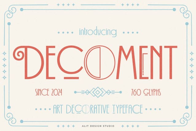 Decoment Font, a stunning font inspired by the bold and sophisticated aesthetics of the Art Deco era. Perfectly blending vintage charm with contemporary versatility, this typeface is a must-have for anyone looking to add a touch of luxury and uniqueness to their designs.