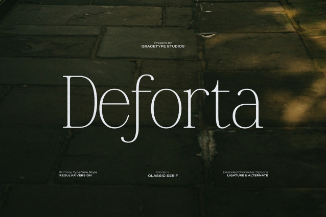 This font is used only for demos (Demo license). If you want to use this font for commercial use please contact: https://creativemarket.com/gracetype_studio/292067111-Deforta-Classic-Serif