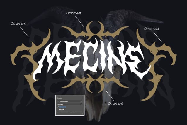 Deicide Remain Font is a cool alternative for you to easily create your Underground band logo or whatever. Using alternative fonts and ornaments will liven up the font and will look cooler and fiercer. It comes with a basic character set and a small group of symbols and signs frequently used in the extreme music sector – Death- and Blackmetal classics such as pentagram drops, roots, wings and more.