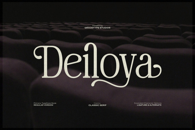 This font is used only for demos (Demo license). If you want to use this font for commercial use please contact: https://creativemarket.com/gracetype_studio/292071362-Deiloya-Classic-Serif-Typeface