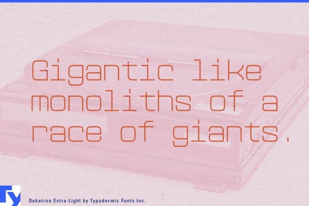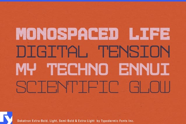 Dekatron Font Family, from Typodermic Fonts, the epitome of precision. Crafted for the modern era, it is a monospaced marvel that speaks in the language of the future. Its design, rooted in the realms of science and technology, offers a squarish and futuristic aesthetic that is both clear and precise.