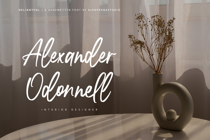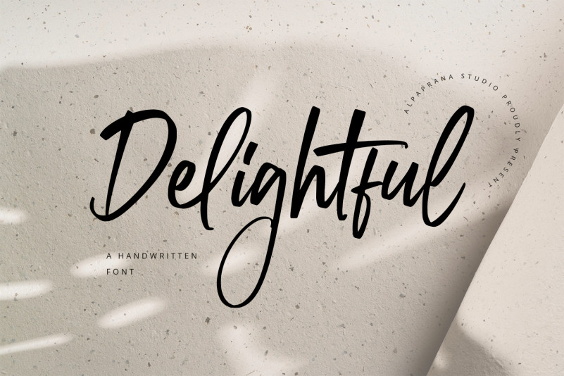 Delightful Script Font is a handwritten font with natural and modern feels. It will be perfectly used for Branding, Logo Design, Lettering, Logotype, Clothing, Poster, magazine, packaging, posters, shopping bags, t-shirts, book covers, photography, special events and other design project.