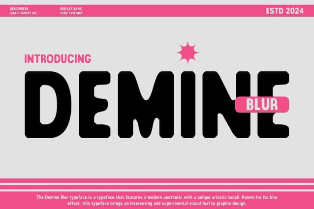 The blur effect in Demine Blur adds a unique artistic touch to its bold and robust design. This combination not only enhances the font’s visual interest but also ensures that your designs stand out with a distinctive and engaging appearance.