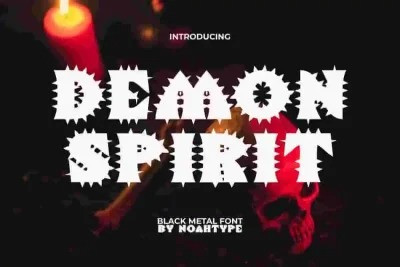Demon Spirit Font is a mysterious horror and unique Black Metal but delivered in a playful display font by NoahType. This font can leave a spooky and fun impression at the same time because of its unique shape. It will be perfect for any designs, such as custom design, brand image, poster, label, invitation, cover, marketing material, menu, printing, product packaging, quotes, signage, website, and many more!