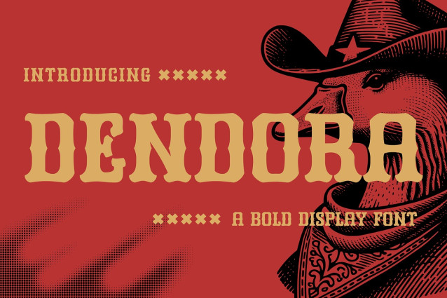Dendora Font is a bold display font inspired by 19th-century styles and the aesthetics of vintage western posters. Each letter and number is crafted with a strong weight and distinctive details, giving it a rugged, bold, and authentic feel.