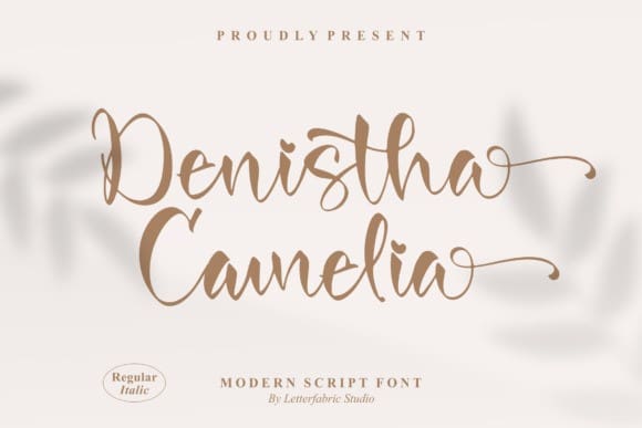 Denistha Camelia Font is a beautiful and chic script font. It is suitable for logos, branding projects, homeware designs, product packaging, mugs, quotes, posters, shopping bags, t-shirts, book covers, name card, and all your other lovely projects that need a beautiful script taste. This font is PUA encoded which means you can access all of the glyphs and swashes with ease!