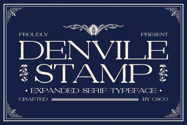 Denvile Stamp Font is a modern serif font featuring a wide shape that exudes elegance and sophistication. The generous proportions create a strong presence, making it ideal for designs that seek to make a statement.