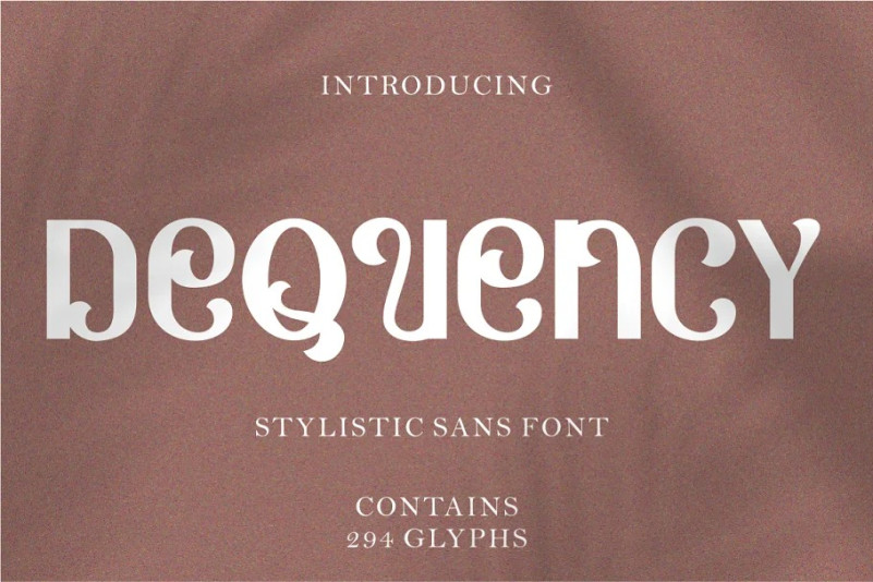 Dequency Display Font. Inspired from unique typography and lettering in the Stylistic alphabet combine with Sans style. With a total of 534 glyphs with 359 alternate, you can make letter combinations for lettering with a lot of options. Come with open type feature ( a lot of alternates and end swash), its help you to make great lettering. Dequency best uses for Logotype, heading,cover, poster, logos, quotes, product packaging, header, merchandise, social media & greeting cards and many more. Dequency is also support multi language.
