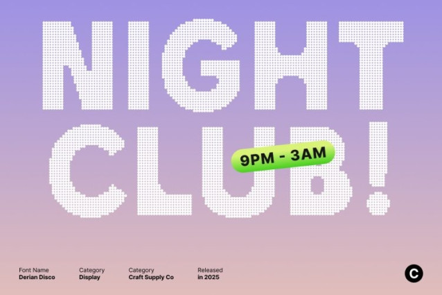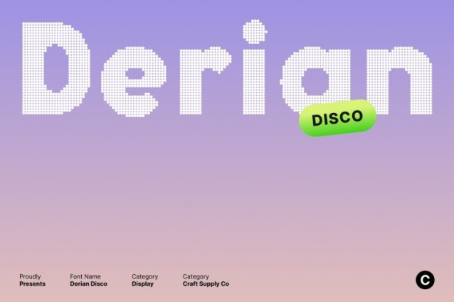 This font is used only for demos (Demo license). If you want to use this font for commercial use please contact: https://craftsupply.co/product/derian-disco/