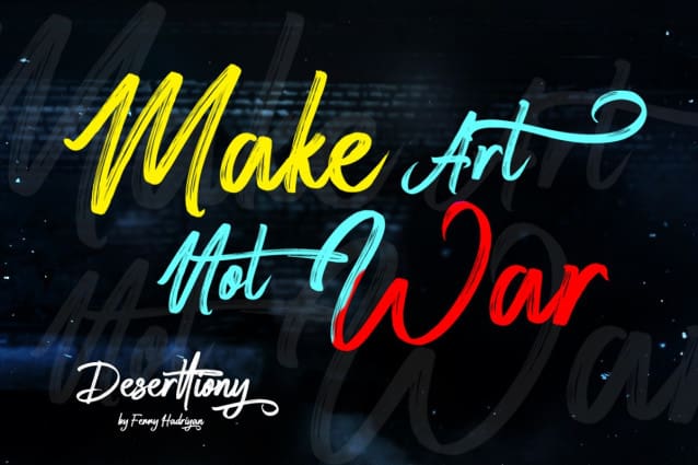 Deserttiony Script Font is script font with handlettering brush style, with opentype feature include of the font. Suitable for design, element design, wedding, event, t-shirt, logo, badges, sticker, and awesome work, etc…