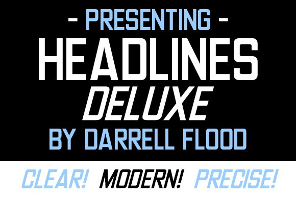 Headlines Deluxe Sans Serif Font by Darrell Flood 14,336 downloads Found in: Sans Serif Fonts, Style / Aesthetic Fonts Headlines Deluxe Sans Ser...