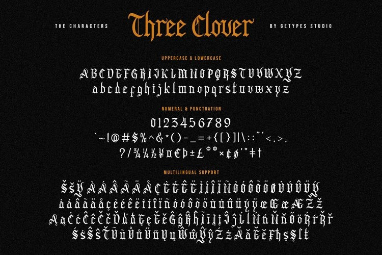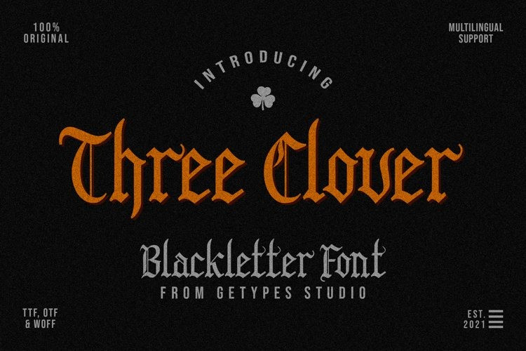 Three Clover Blackletter Font by Getypes Studio 18,637 downloads Found in: Blackletter / Gothic Fonts Three Clover Blackletter Font
