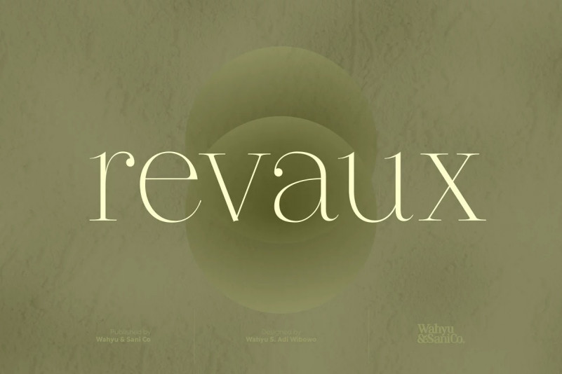 Revaux Serif Font by Wahyu and Sani Co. 12,560 downloads Found in: Serif Fonts, Style / Aesthetic Fonts Revaux Serif Font