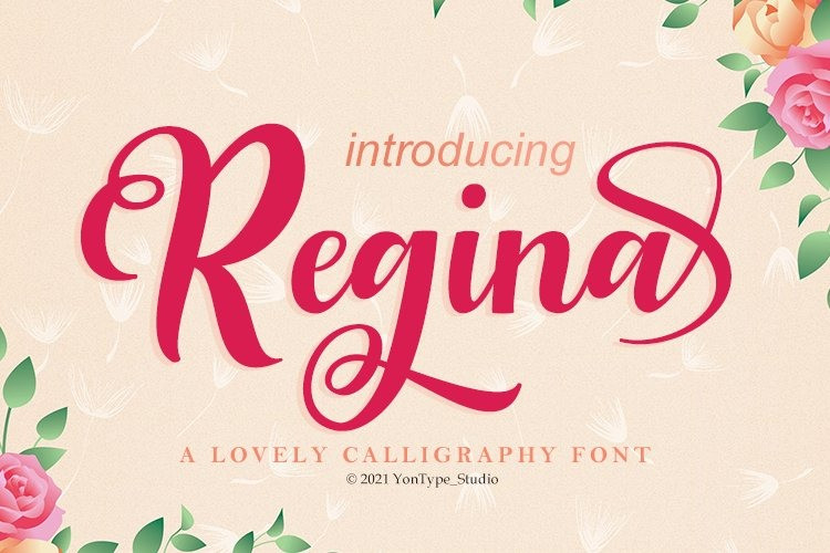 Regina Calligraphy Font by YonTypeStudio.Co 9,453 downloads Found in: Calligraphy Fonts, Script Fonts Regina Calligraphy Font