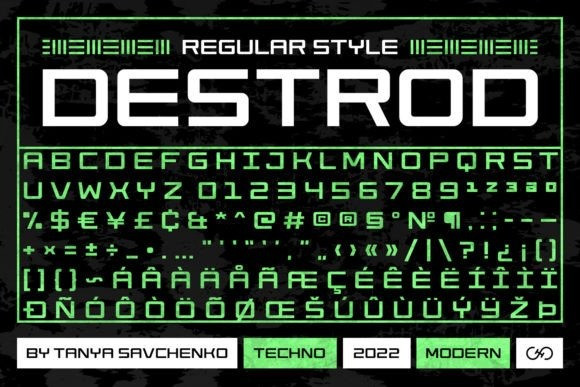 Destrod Sans Serif Font, is a modern techno sans serif font. Its futuristic and minimalist style makes it incredibly suitable for all your projects that need a sci-fi touch.