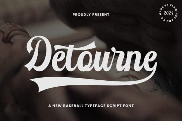 Detourne Retro Font a sports baseball font with a script retro-style that brings the timeless elegance and nostalgic charm of baseball to your designs. Perfect for sports branding, team jerseys, promotional materials, and more, Detourne captures the spirit of pastime with its stylish and fluid letterforms.