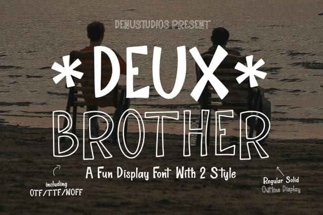 Deux Brother Font | Fun Display With 2 Style Font, from Denustudios, suitable for any projects such as: logos, branding projects, homeware designs, product packaging, mugs, quotes, posters, shopping bags, t-shirts, book covers, name card, invitation cards, greeting cards, label, photography, watermark, special events, and all your other lovely projects that need a Fun Display Font taste.