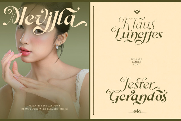 Dh Milate Font is a beauty-inspired elegant serif family crafted with smooth curves, graceful contrast, and a naturally refined aesthetic. Designed for modern branding, cosmetic packaging, editorial layouts, and premium lifestyle visuals, this typeface brings a soft, feminine, and sophisticated character to any project.