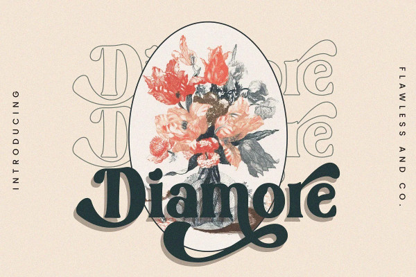 Diamore Font is a gorgeous and elegant display font. Stylish, elegant, and chic, this font is guaranteed to add a special romantic touch to any design you wish to create!