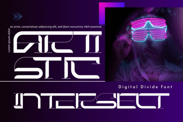 DIGITAL DIVIDE – FUTURISTIC FONT, a revolutionary typeface engineered for the digital frontier. This is a powerful, architectural font that perfectly balances sharp traditional serifs with a clean, futuristic geometry. The design is characterized by its dramatic contrast: bold, authoritative vertical strokes meet sleek, hairline horizontal elements, lending an aura of technical precision. Its defining feature is the strategic use of negative space and digital cuts, giving the letters a sophisticated, fragmented look—perfect for conveying innovation, speed, and high technology. DIGITAL DIVIDE is the ultimate choice for branding, headlines, and posters in the tech, gaming, automotive, and sci-fi industries. It commands attention and delivers a message of modern, pioneering design.
