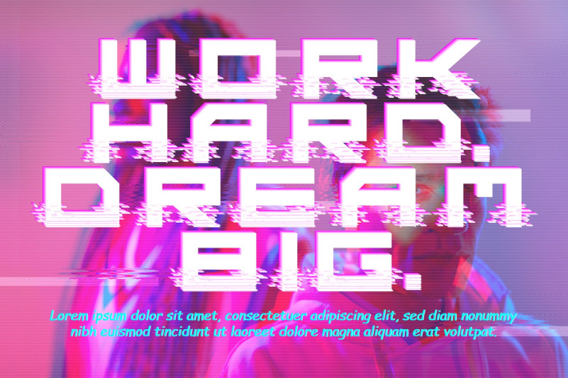 Digital Glitch Display Font is a premium distorted glitch font ideal for gaming, music and movie posters or other graphics. It features all uppercase letters, numbers and common symbols. It’s perfect for , poster, logo, magazine, cover, banner, tshirt and headers, or even large-scale artwork.