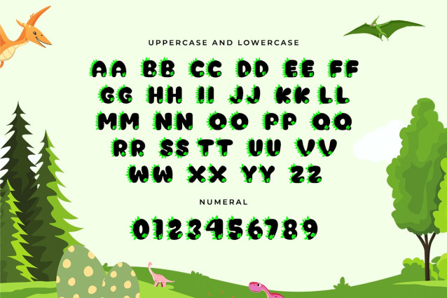 This font is used only for demos (Demo license). If you want to use this font for commercial use please contact: https://fontkong.com/product/dino-alphabet-new-decorative-kids-font/