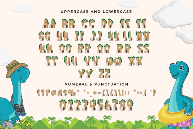 Dino Child New Decorative Kids Font is a modern font with a simple yet adorable look. A cute typeface that anyone who sees it can easily fall in love with. Upright font with two dinosaur eggs underneath, easy to understand and legible. Dino Child New Decorative Kids Font can be used as a digital font and a print font. This font can be used as comic covers, magazine covers, and children’s book covers. This font can be used for posters and banners. This reason must be equipped with colors and ornaments that support it. For small print fonts, these fonts can also be used for small amusement park merchandise, such as; key chains, refrigerator magnets, and stickers, or can be produced on t-shirts, jackets, hats, etc. In addition, it can be used as snack packaging. The application of this digital font is in product advertisements, animated cartoon videos, children’s films, and so on. This font can give an exciting and enjoyable impression to video shows. This is to attract interest in buying marketed products and watching films that have been shown. Our collection of Display fonts are compatible for use as; Figma Fonts, Canva Fonts, Freepik Fonts, and Adobe Fonts. They also function as Windows Fonts and Apple Fonts. For your social media needs, you can use and install fonts in our Espot & Futuristic font collection to use as Instagram Fonts, Facebook Fonts, and Twitter Fonts.