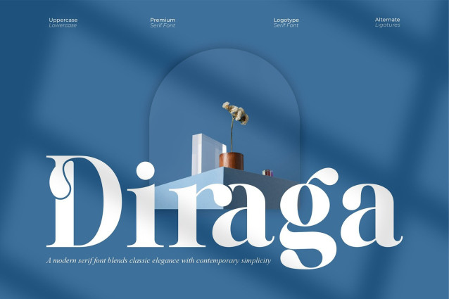 Diraga Font is a modern and classy font type for all branding and logo designs. This modern and classy Serif font has a beautiful character. This font is suitable for invitation card designs, cool logos, movie titles, movie names, business cards, book titles, brand names, and various other designs. DiragaSerif is a smooth serif font that exudes sophistication and the moment. Its stylish ligatures make this font a perfect partner for any project.