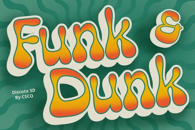 Discota 3D Font: Retro Bubble Display Font, inspiration from balloons, infusing a retro vibe into its bubbly design. Its playful display appearance evokes nostalgia and charm, reminiscent of carefree days.