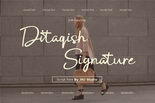 Designed to evoke a sense of authenticity and charm, Ditaqish Signature is ideal for creating logos, branding materials, wedding invitations, social media posts, and any project that calls for a luxurious and stylish feel. Its versatility makes it equally suited for both modern and timeless aesthetics.