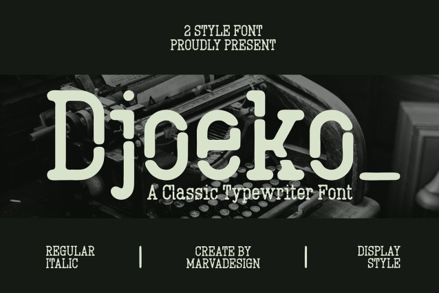 This font is used only for demos (Demo license). If you want to use this font for commercial use please contact: https://creativemarket.com/Marvadesign/280307912-Djoeko-A-Classic-Typewriter?u=fontlot123