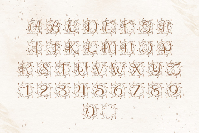 DM Cloverlyn Font is a graceful serif monogram font inspired by the charm of nature and refined simplicity. Each uppercase letter is paired with subtle clover and botanical elements, making it perfect for wedding branding, personalized gifts, Cricut crafts, and minimalist floral design projects.