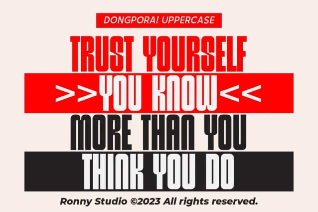 Dongpora Font is a type of thick bold font which has a different character from other bold fonts, Dongpora has a strong but soft character, with an elegant and fresh theme, Dongpora is able to answer your current needs who are designing something unique. Big. It has superior weight in logos, posters, social media, magazine headlines, clothing, large print formats – and wherever you want to see it. Inspired by popular design styles, bring your imagination to life with Dongpora Font.