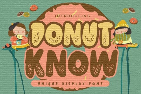 Donut Know Font is a Unique Display Font. This Playful kid with a natural feel. This handmade font will make your design has a beautiful natural touch for each detail. It is perfect for any design project as Invitation, logo, Kids, book cover, craft, or any design purposes.
