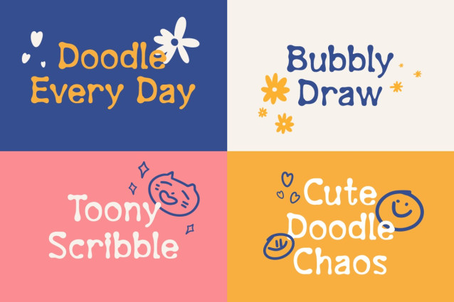 Doodle Giggle is versatile and creatively vibrant, perfect for crafting, logo design, birthday invitations, playful packaging, and children’s branding. Its cheerful demeanor also suits posters, stickers, magazine covers, film titles, greeting cards, and educational materials. Whether you are designing fun stationery or eye-catching business materials aimed at parents and kids alike, this font offers endless possibilities to inject personality and warmth into your projects. Bring your designs to life and inspire endless giggles with the charming, handmade authenticity of Doodle Giggle.