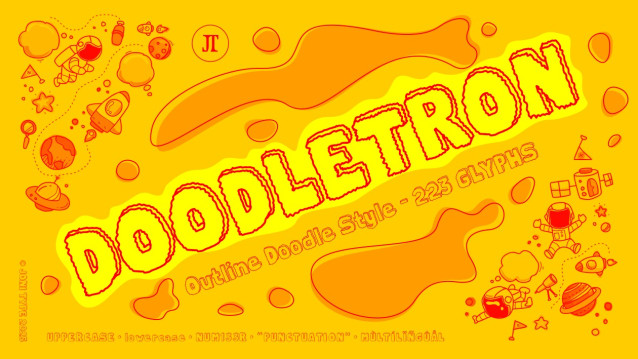 Featuring uppercase, lowercase, numbers, punctuation, and accented characters, Doodletron is versatile enough to support multiple languages while keeping its doodle-inspired charm intact. It’s bold, funky, and guaranteed to make your text stand out with a handmade, artistic twist!