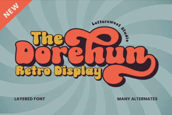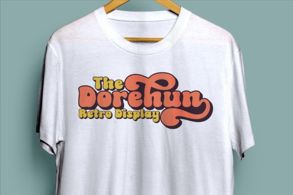 Perfect for creating vintage posters, funky album covers, eye-popping logos, and cheerful social media graphics, Dorehun adds a joyful and nostalgic flair wherever it’s used. Whether you’re going for a full-on retro vibe or just want to add a touch of boldness to your text, this font is here to deliver.