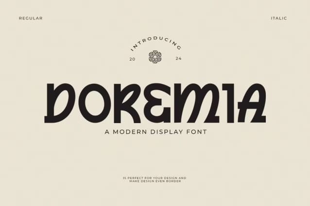 Doremia Display Font is Modern Display Font with experimental style look modern, fun, and experimental display font. Looks like made with a strong gesture. A bit constructive with cursive elements. use this font for anything beauty place for your logo, headline, cover book, magazine and many more