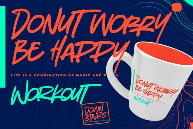 Downstairs Script Font is Pure Handmade Typeface Authentic that is written casually and quickly. Then scanned and carefully drawn into vector format. This handmade font will make your design has a beautiful natural touch for each details. It is perfect for any design project as Invitation,logo, book cover, craft or any design purposes. That is why Downstairs has charming, authentic and relaxed characteristic more natural look to your text with a more natural look to your text. You can activate Ligature OpenType panel design more interesting. Downstairs is perfect for homeware designs,branding projects, Logo design, Quotes product packaging.